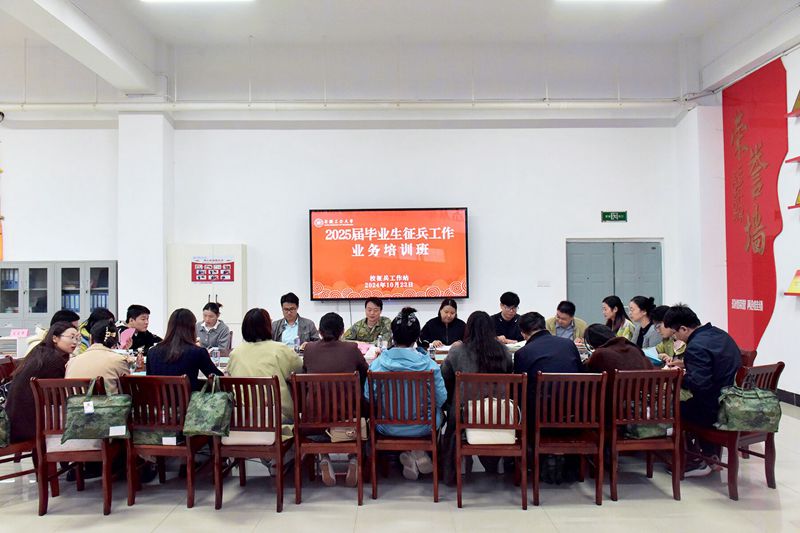 为深入贯彻落实习近平强军思想,激发大学生应征入伍热情,拓宽毕业生就业渠道,切实做好2025届毕业生征兵工作,10月22日下午,我校举办2025届毕业生征兵工作业务培训班。副校长郑啸,花山区征兵领导小组副组长、征兵办主任、人武部部长余迪出席,学生工作部、研究生工作部、武装部、教务处、后勤处等部门负责人,各学院分管学生工作副书记、全体2025届毕业班辅导员参加。