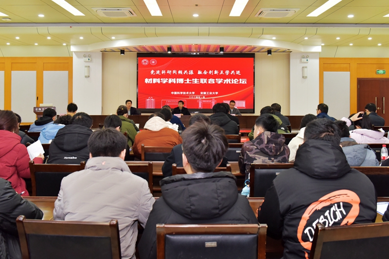 1月14日,首届中国科学技术大学—安徽工业大学材料学科博士生联合学术论坛在我校佳山校区学术会议中心举行。校党委常委、副校长水恒福,中国科学技术大学材料系党总支书记朱彦武出席论坛开幕式。两校材料学科博士生以及导师参加论坛开幕式。我校研究生院(研究生工作部)常务副院长(部长)、学科建设处处长张世宏主持开幕式。