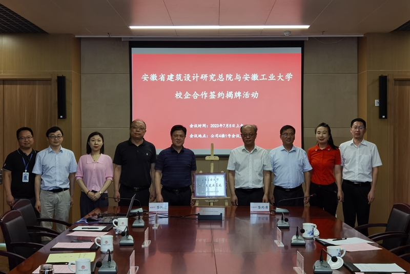 刘明代表学校与上海宝冶南京分公司、中国电子系统工程第二建设有限公司、安徽省建筑设计研究总院股份有限公司分别签订了大学生就业协议,并向公司授予“安徽工业大学大学生就业基地”牌匾。