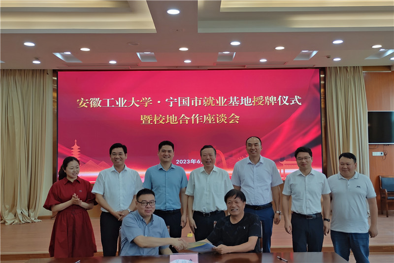 仪式上,祖明为安徽中鼎控股(集团)股份有限公司、安徽中鼎精密科技股份有限公司、桑尼泰克精密工业股份有限公司、苏州仕净科技股份有限公司授予了“安徽工业大学大学生就业基地”牌匾。学生工作部部长何伟与四家企业签署了《人才培养与就业基地建设合作协议》,电气与信息工程学院党委副书记、副院长夏玉钦与四家企业签署了《校企联动促“第二课堂成绩单”服务大学生就业合作协议》。与会人员一起观看了宁国城市形象宣传片、人才政策宣传片。
