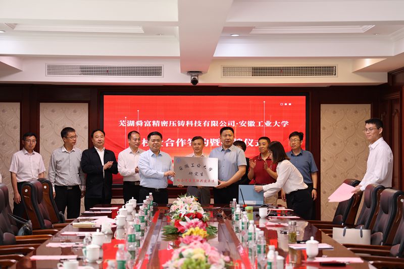 期间,校企双方签订合作协议,并进行“安徽工业大学研究生校企党建翼联共建单位”和“安徽工业大学研究生产教融合协同育人基地及就业基地”授牌。