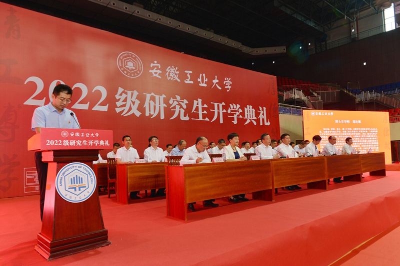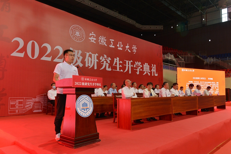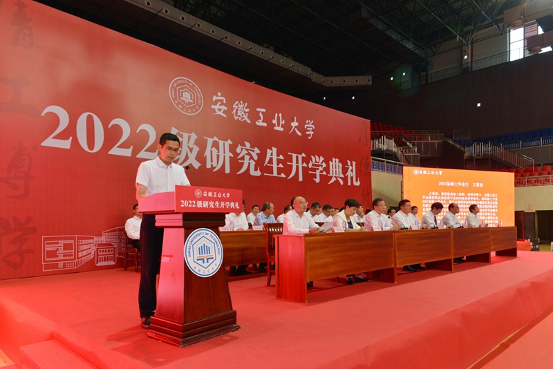 9月28日上午,我校2022级研究生开学典礼在秀山校区体育馆隆重举行。全体在校党政领导陆林、魏先文、祖明、刘明、潘淑琴、水恒福、王先柱,校友代表、中核特种材料提取存储技术重点实验室副主任、我校2007届材料学院材料加工专业校友王常春,以及研究生院负责人,各学院党委书记、院长、党委副书记、科研副院长,导师代表、在校生代表,研究生辅导员,全体2022级研究生和研究生院全体人员共1700余人参加开学典礼。典礼由校党委副书记祖明主持。