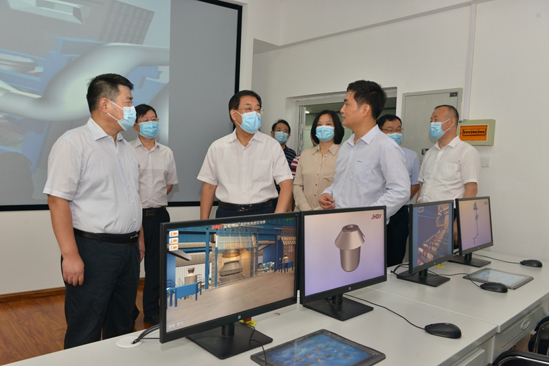 在冶金过程虚拟仿真实践教学基地,袁方一行参观了冶金仿真实验室、材料成型仿真实验室、冶金生产数据远程交互中心,观看了转炉炼钢仿真实训系统及设备三维动画,详细了解了基地的使用情况。袁方对我校在冶金仿真实践方面取得的成果给予充分肯定。他指出,虚拟仿真实践类课程教学对教学模式的创新以及冶金类技术人才的培养具有重要推动作用,要灵活运用信息化、数字化手段,创新教学模式,进一步实现“沉浸式教学”“沉浸式学习”,不断提高学生工程实践能力,提升实践教学效果,为培养高水平工程实践人才搭建良好平台。
