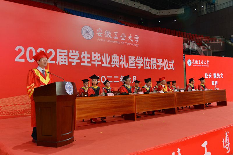 大会在全场师生齐声高唱国歌中拉开帷幕。校党委书记陆林宣读了《2022年安徽省普通高等学校优秀毕业生表彰决定》《2022年安徽工业大学优秀毕业生表彰决定》,来自冶金、材料、化工三个学院的46名同学荣获2022年安徽省普通高等学校优秀毕业生、73名同学被评为2022年安徽工业大学优秀毕业生。