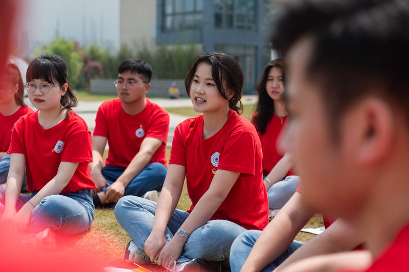活动期间,同学们围坐江畔草地,开展青春诵读、青春感悟、青春回响研读活动,将对祖国的祝福和对习近平总书记重要讲话精神的学习感悟写在亲手折叠的千纸鹤中。在阳光的映射下,装满千纸鹤的透明玻璃瓶折射出五彩斑斓的光,同学们给这个瓶子起了个好听的名字“青春筑梦瓶”。