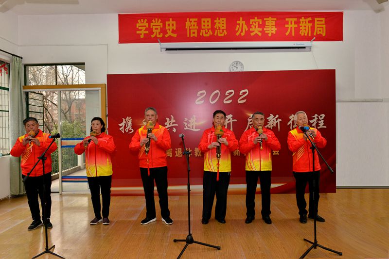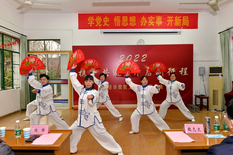 邢琅、季钟秀、封定一等老同志发表了新春感言。联欢会还进行了精彩纷呈的文艺表演,太极扇《中国功夫》轻柔舒缓、刚柔并济;一段京剧《娄山关》,唱出了一腔情怀;优雅动听的葫芦丝合奏《军港之夜》以及慷慨激昂的合唱《祖国不会忘记》,将联欢会推上了高潮。活动现场,夏家龙、秦贤适、古绪鹏三位老同志写对联送祝福。(撰稿:章琼 审核:李波 张苒 杜飞)