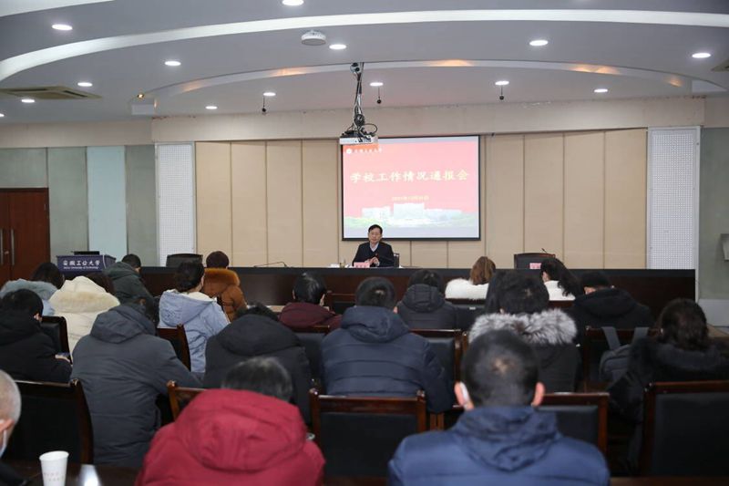 12月31日上午,学校召开2021年学校工作情况通报会。校长魏先文出席会议并作学校工作情况通报。会议由校工会主席、教代会执委会副主任姚敏主持。