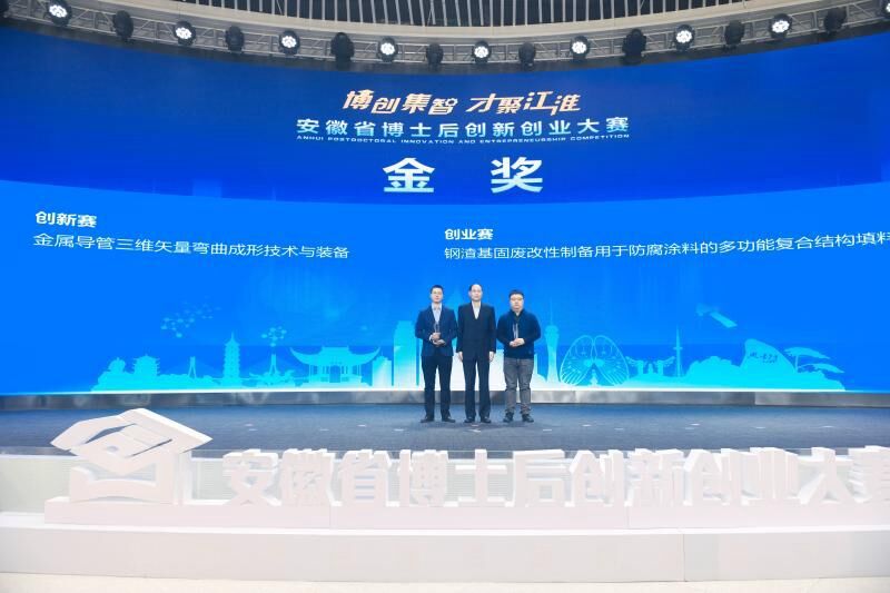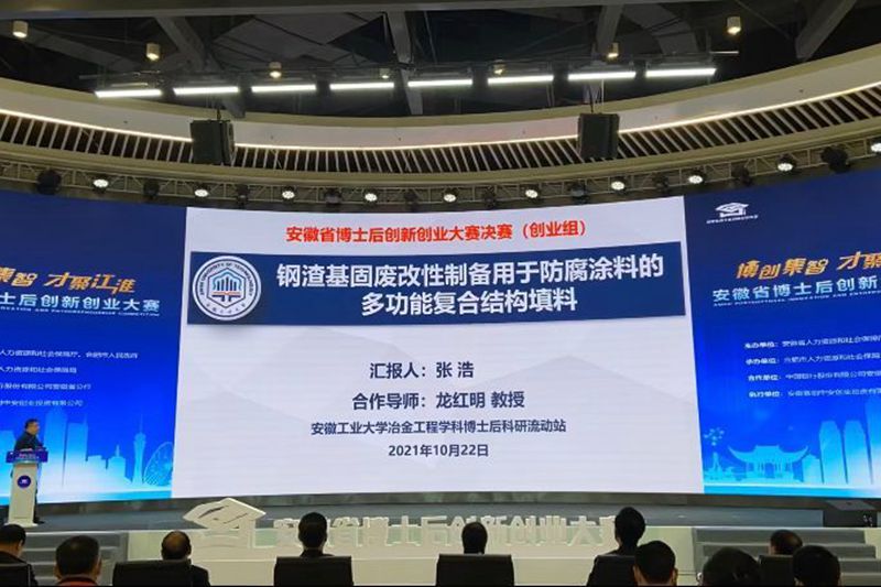 近日,第一届全国博士后创新创业大赛安徽赛区暨首届安徽省“博创集智•才聚江淮”博士后创新创业大赛在合肥举行。我校“钢渣基固废改性制备用于防腐涂料的多功能复合结构填料”项目获安徽省创业组唯一金奖。