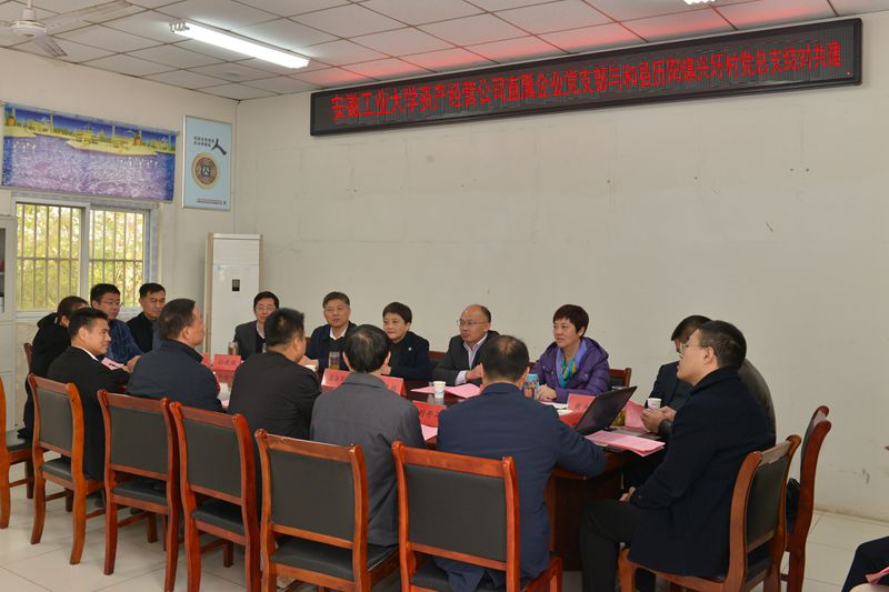 资产经营公司直属企业党支部与和县历阳镇兴圩村党总支举行结对共建活动。潘淑琴、王先柱一行与和县县镇相关领导、定点帮扶村“村两委”干部、驻村工作队等进行了座谈交流。