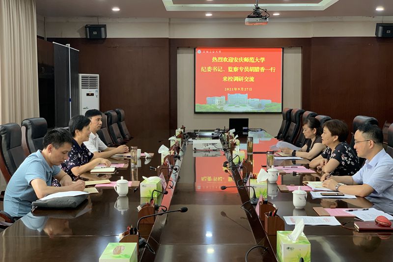 潘淑琴对胡腊香一行的来访表示欢迎,并介绍了我校校内巡察、院级纪委建设、日常监督等工作的主要做法。她指出,近年来学校纪委(监察专员办公室)围绕学校中心工作,聚焦监督第一职责,强化政治监督,做实日常监督,创新工作思路,完善制度机制,在稳中求进中推动纪检监察工作。希望今后能够与安庆师范大学纪委进一步加强沟通交流,相互借鉴,取长补短,共同为新时代纪检监察工作的高质量发展贡献力量。
