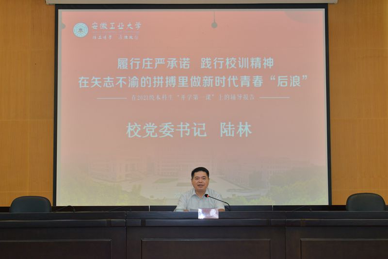 陆林指出,高校学生是新时代的青年,是学校事业发展的青春“后浪”,并寄语同学们三点希望。一要做志存高远的青春“后浪”。希望同学们始终守牢坚定的理想信念,把习近平新时代中国特色社会主义思想作为指明灯,奋力追逐中国梦。要勇敢攀登,做到同心向党、真情为民,自觉肩负起时代重任,与梦想共同奔跑,用实干淬炼“铁肩膀”,用担当挺起“硬脊梁”。二要做学思践悟的青春“后浪”。希望同学们弘扬伟大建党精神,在探求真理的路上,深入学习、深入思考、深入实践、深入感悟,做到知行合一、融会贯通。要把课堂和实验室作为训练场,把图书馆作为新驿站,把运动场作为健身房,把小社团作为释放青春的大舞台,在安工大留下属于自己的精彩故事。三要做不懈奋斗的青春“后浪”。希望同学们在浩瀚的天空驰骋思想,在更广阔的舞台实践创新,用修身笃行塑造人生,用求实创新建功立业,在大学新征程中,让梦想起航。要有久久为功的韧劲和脚踏实地的干劲,在逐梦路上行稳致远,让理想之花开在安工大,结出硕果。