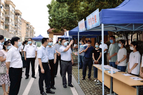 张泉实地察看了校园环境、硬件设施、物资储备,观看了学生返校报到疫情防控演练,深入体温复测点、临时隔离点、学院报到点、学生食堂,详细了解学校疫情防控和开学准备情况,对医护人员表示慰问,听取了我校关于师生返校信息摸排、防疫物资储备、冷链食品采购及存储、教学准备等情况的工作汇报,对我校在疫情防控工作中扎实有效的措施和取得的成效给予充分肯定。他指出,疫情防控工作责任重大、任务艰巨,市有关部门和学校要以对学生、对家长、对社会高度负责的态度,准确研判疫情防控形势,精心制定应急处置预案,不折不扣落实好各项防控措施,尤其必须把落实疫情防控各项措施摆在突出位置,压紧压实主体责任,严格执行返校防疫标准,把好校园“入门关”,精准掌握师生健康状况,重点加强对省外返马师生管理管控,确保开学工作平稳有序。