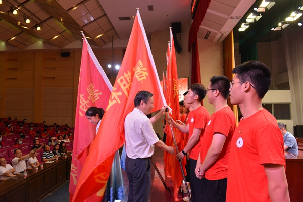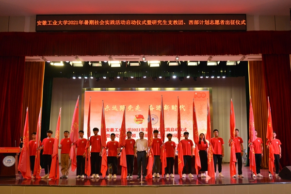 7月2日下午,我校“永远跟党走奋进新时代”2021年大学生暑期社会实践活动启动仪式暨研究生支教团、西部计划志愿者出征仪式在秀山校区新大学生活动中心举行。校党委副书记祖明出席启动仪式,宣传部、学工部、研工部、教务处、团委、工创中心等部门负责人以及各学院党委副书记、团委书记,指导教师代表、社会实践队员代表以及研究生支教团成员和西部计划志愿者参加启动仪式。