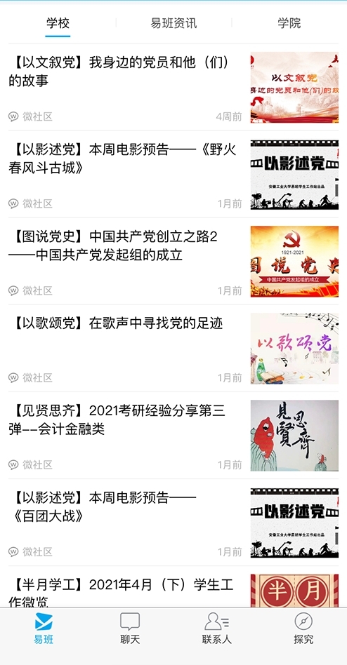 为深入贯彻落实习近平总书记在党史学习教育动员大会上的重要讲话精神,推进党史学习教育走深走实、出新出彩,我校依托易班平台打造党史学习教育“云课堂”,打破教育时空壁垒,发挥网络育人优势,让学生主动探索党史、学习党史、感悟党史。