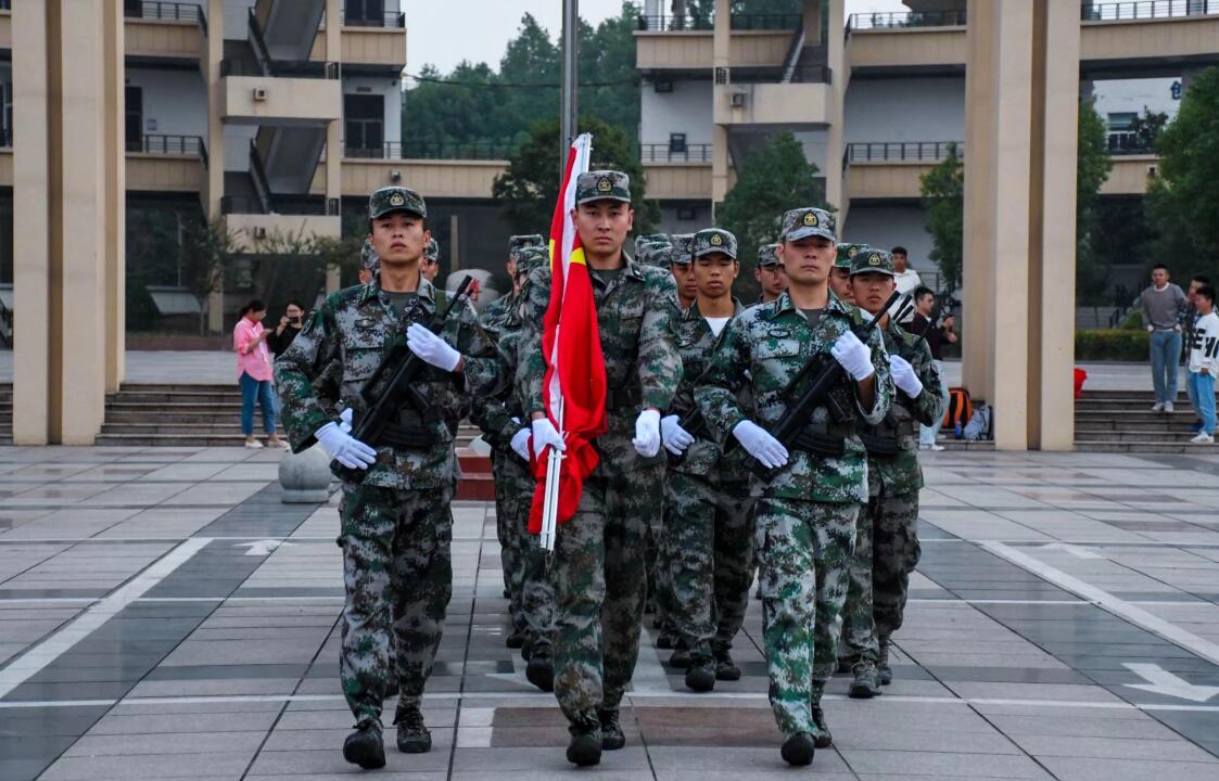 我校是教育部国防教育特色学校,在重大节日开展升国旗仪式是学校加强爱国主义教育的有效形式。国旗护卫队由退伍大学生组成,这支队伍平时还担负着征兵宣传、协助军训和校园安防等任务,他们以特有的青春光彩和魅力,成为了安工大校园一道靓丽的风景线。(撰稿:谢学华 审核:吴文兵 张苒 杜飞)
