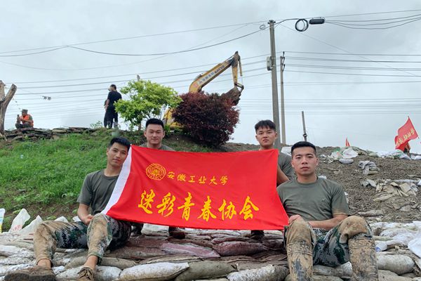 管理科学与工程学院退役大学生熊文峰和电气与信息工程学院退役大学生李帅、刘永贤、刘亚南4人主动申请和马鞍山市退役军人突击队一道参加抗洪抢险。7月18日突击队从江心乡尾棚渡口乘渡轮前往彭太岛,针对岛上部分地区发生的塌方和管涌,紧急开展了险情地段抢险固坝并对塌陷地段进行填埋;7月19日江心洲主堤发生管涌,造成民房倒塌,接到险情后突击队直接临时编入71临汾旅,协同抢险,完成了对江心洲主堤的加固。