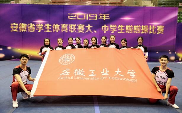 2019年安徽省学生体育联赛大学生啦啦操比赛于12月22日至12月25日在安徽医科大学举行。来自全省高校的36所1162名运动员参加了角逐。我校代表队凭借出色的成套编排,队伍整齐,动作规范,舞姿优美征服评委和观众,最终获甲组啦啦操集体花球示范套路第一名,集体花球自选动作第三名,并获“体育道德风尚奖”。