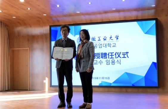 11月15日,韩国启明大学工业设计学科学科长、创业支援团副团长、博士生导师金润熙教授应邀访问我校艺术与设计学院并受聘为我校客座教授。副校长顾明言出席聘任仪式并颁发聘书。