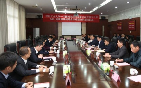 11月13日下午,我校与中国电信安徽公司在佳山校区会议中心签订5G+创新应用战略合作框架协议。中国电信安徽公司党委委员、副总经理方文胜,党委委员、副总经理郑家升,校党委书记刘新跃,校长魏先文,副校长顾明言出席签约仪式。签约仪式由魏先文主持。