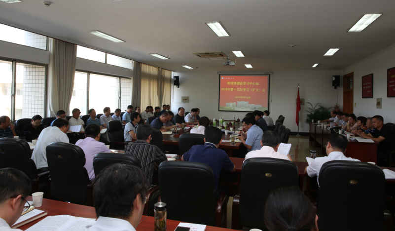 9月18日下午,校党委理论学习中心组召开2019年第十三次学习(扩大)会暨学校“不忘初心、牢记使命”主题教育专题学习会,党委中心组成员,督导员,学校“不忘初心、牢记使命” 主题教育督导组组长,党委委员、纪委委员,各基层党委(党总支、直属党支部)书记和相关部门负责人参加了会议。校党委书记刘新跃主持会议。