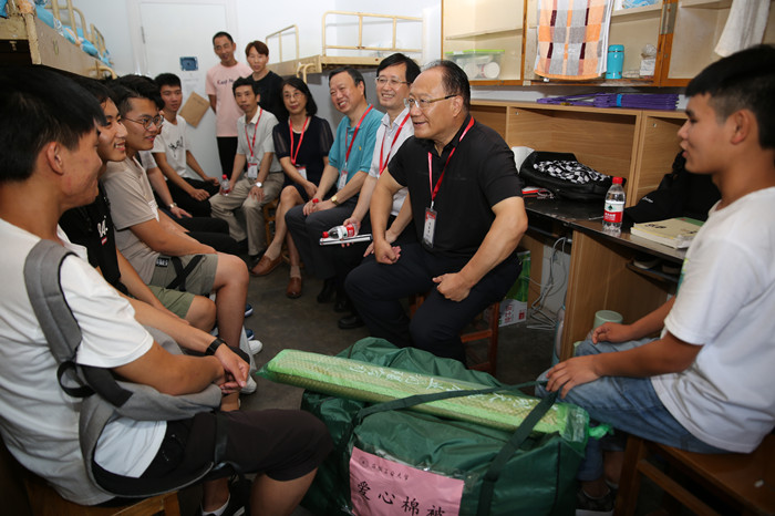 9月6日,校领导刘新跃、魏先文、祖明、顾明言、刘明、潘淑琴和水恒福来到迎新现场,向工作人员了解新生报到、绿色通道办理、新生住宿等情况,并与新生及家长互动交流。校领导还深入到电气学院、商学院、公法学院和研究生院等新生宿舍走访慰问,仔细询问新生们的家庭情况、生活习惯,与新生互动交流。校党委书记刘新跃勉励新同学要不断增强适应能力,学会自立和自律,严格要求自己;要及早确定目标,制定规划,继续保持参加高考时的雄心壮志和拼搏精神,养成良好的学习习惯和生活习惯,争取在大学期间取得更大的进步;要相互团结,相互帮助,在集体生活中学会换位思考,多一份理解,多一份包容,在学习和科技创新活动中比学赶帮超。在与学生家长的交流中,他希望广大家长能严格对孩子的要求,加强与孩子之间的交流,主动了解孩子在校期间的学习生活情况,共同担负起“全员育人”的责任。校长魏先文鼓励新同学既要仰望星空,胸怀大志,又要脚踏实地,刻苦钻研,让青春在奋斗中优雅绽放。刘新跃、魏先文等校领导还为部分困难新生送上了“爱心棉被”等生活用品。