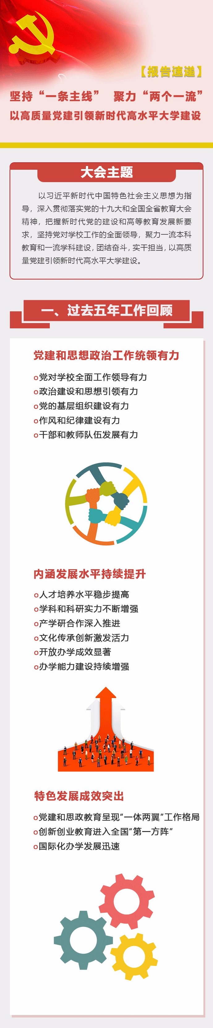 5月15日上午,中国共产党安徽工业大学第四次代表大会隆重开幕。会上,校党委书记刘新跃代表中共安徽工业大学第三届委员会向大会作工作报告。在此通过图片的形式,为大家呈现报告的精彩内容。