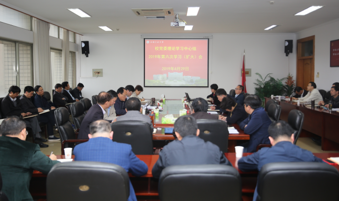 4月29日下午,校党委理论学习中心组召开2019年第六次学习(扩大)会,党委中心组成员,督导员,党委委员、纪委委员,各基层党委(党总支、直属党支部)书记和相关部门负责人参加了会议。校党委书记刘新跃主持会议。