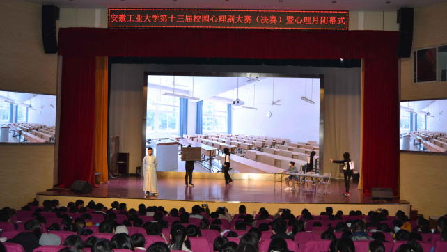 12月17日晚,我校第十三届校园心理剧大赛(决赛)在秀山校区大学生活动中心精彩上演。马鞍山师专、安工大工商学院、马鞍山职业技术学院心理中心负责人以及我校纪委办、组织部、宣传部、教务处、团委和学工部等人员担任评委,来自校园观察团的同学担任大众评委。相关学院副书记和心理教育工作站辅导员、我校专兼职心理咨询师以及600余名同学共同观摩了比赛。至此,历时一个多月的我校第29届“要爱我(12.5)”心理健康月活动闭幕。