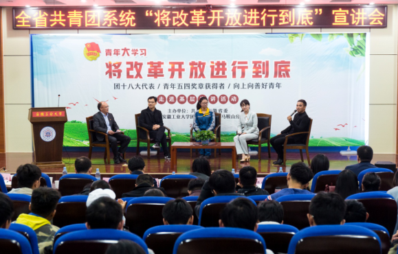 11月14日,由团安徽省委主办、安徽工业大学团委承办的全省共青团系统青年大学习“将改革开放进行到底”——团十八大代表、青年五四奖章获得者、向上向善好青年等先进青年典型走进基层宣讲活动在安徽工业大学举办。校党委书记刘新跃在宣讲活动开始前与宣讲团一行深入交流,团省委组织部、宣传部、学校部负责同志,校团委及各级团组织负责人和青马班全体学员等参加宣讲活动。
