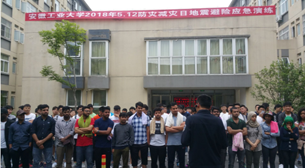 为进一步增强广大师生安全防范意识,提高突发情况自救互救和应急处置能力。在全国第十个“5.12防灾减灾日”到来之际,12日下午,我校在秀山校区开展了防灾减灾日地震避险应急演练。保卫处、学工部、后勤处、国际教育学院相关负责人、工作人员,各学院学生代表和国际教育学院2017级留学生参加了演练。