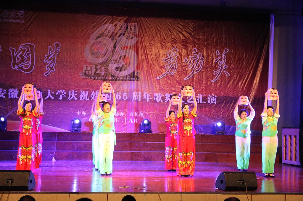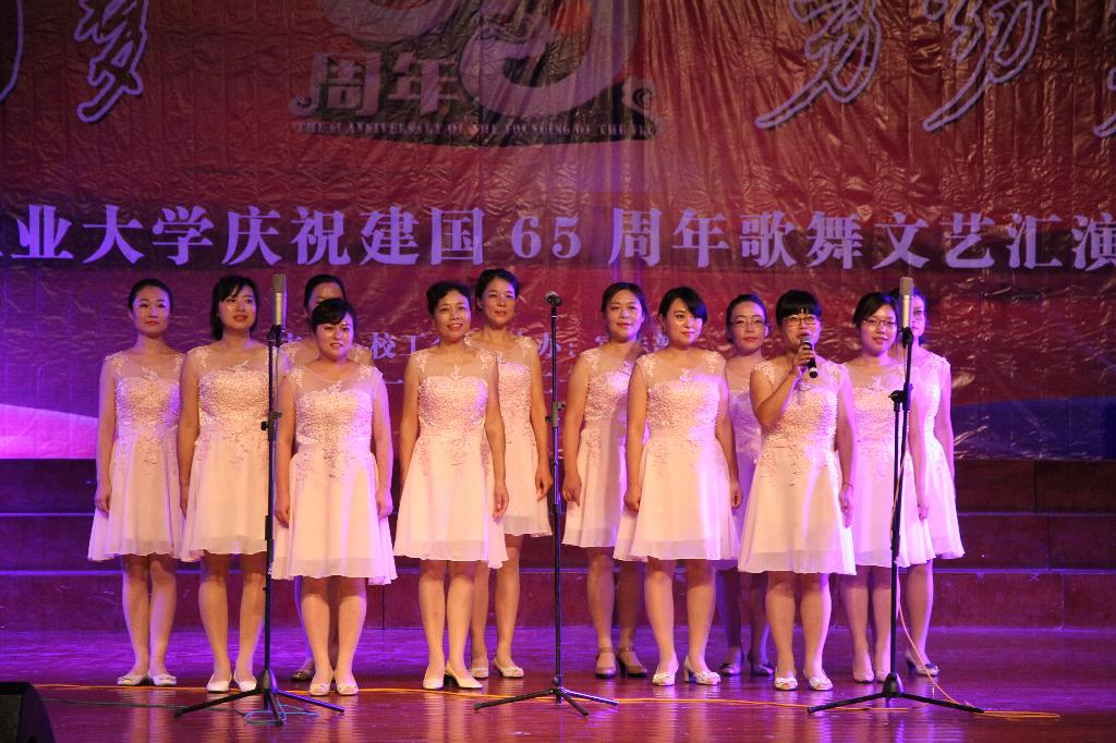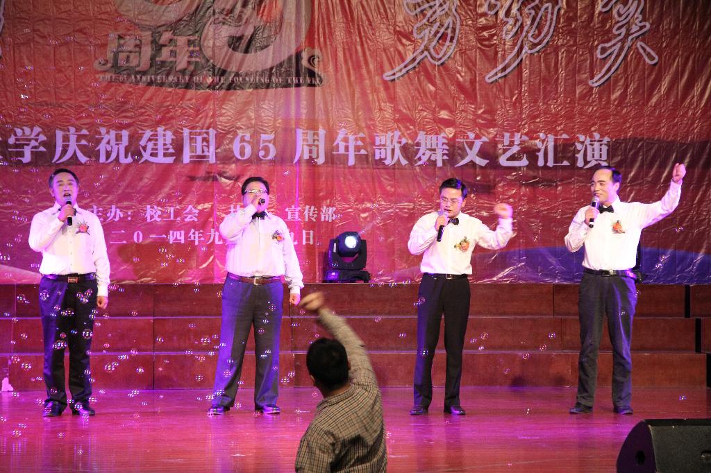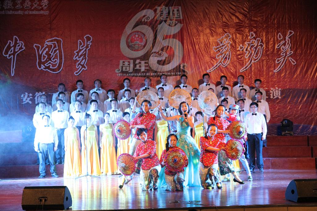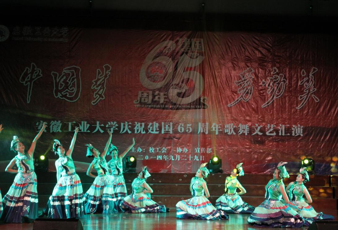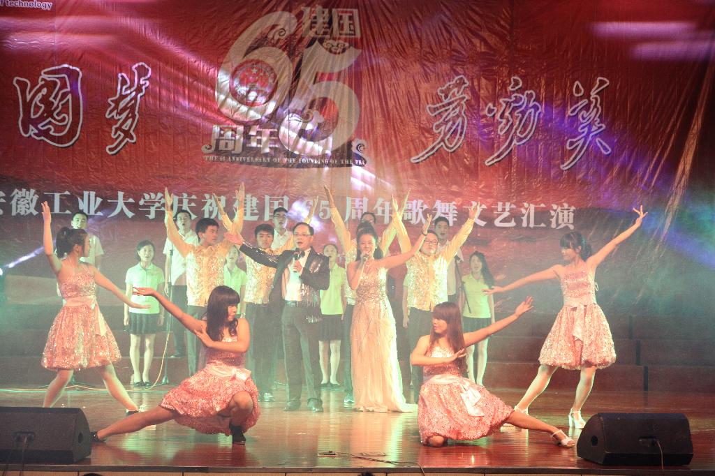9月29日晚,为隆重庆祝中华人民共和国诞辰65周年,讴歌新中国成立以来,特别是改革开放以来所取得的巨大成就,抒发我校广大教职工热爱祖国、热爱人民的深厚感情,展示全校师生热爱生活,奋发进取的精神风貌,丰富校园文化生活,学校在秀山校区新大学生活动中心举办了“中国梦劳动美”暨庆祝建国65周年歌舞文艺汇演。校纪委书记张国宝,党委常委、组织部部长刘明,校党委宣传部部长赵保平,校工会主席朱成序及有关学院、部门负责人出席了活动。