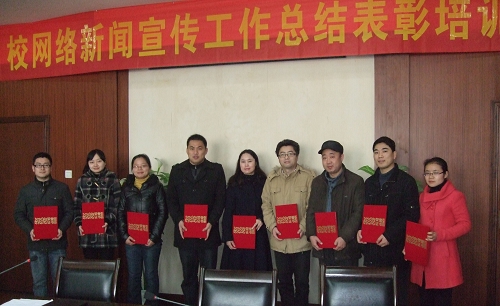 会上,总结了2011年校网络宣传工作,表彰了2011年网络宣传工作先进集体及个人,下发了2012年各单位网络新闻宣传任务,获奖代表祝小迁、杨建分别代表机关和学院发言。
