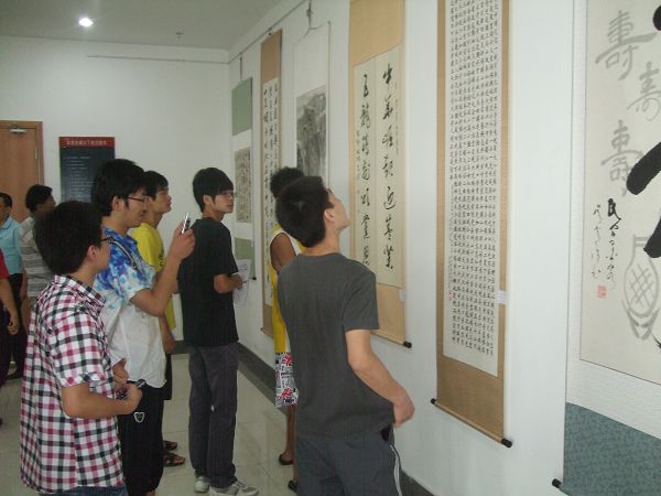 本次书画展经过三个月的充分准备共展出书画作品近百幅。参展作者,有书画技艺精湛的行家里手,也有小试锋芒的书画新秀;有年逾古稀的离退休老同志,也有工作在教学、科研、管理一线的中青年,还有激情满怀的青年学子。作品内容丰富,格调高雅,形式多样。书法作品,楷、行、隶、草、篆各体皆有。绘画作品,中国画、水彩画、工笔画和油画俱全。这些书画作品无不凝聚着作者对党从内心洋溢出的无限的深厚情怀,无不为党90年来所取得的辉煌成就而挥毫抒情。特别是单光玉的“革命圣地图”,由井冈山颂、遵义、大渡桥横铁索寒、延安颂、红岩、西柏坡颂、东方欲晓、万山红遍、巨龙腾飞等九副画作组成,寓意建党90周年,既体现了对党的深厚感情,也给书画展增添了风采,还给书画爱好者带来了别样的体会与感受。 (党委宣传部)