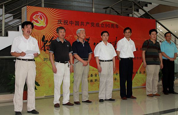 6月30日上午,由校党委宣传部、校工会、学工部、团委、图书馆主办,校教工书画协会承办的“翰墨丹青颂伟业——庆祝建党90周年师生书画展”在我校东区图书馆四楼大厅隆重开展。校党委副书记汪光阳,副校长、校教工书画协会主席陈润,校教工书画协会名誉主席老领导单光玉出席开展仪式。校工会主席朱成序,学工部部长陈选华,图书馆馆长许杰星,宣传部副部长夏家龙,校教工书协副主席、秘书长、副秘书长,书画作者和师生书画爱好者参加了开展仪式。开展仪式由党委宣传部部长赵保平主持。